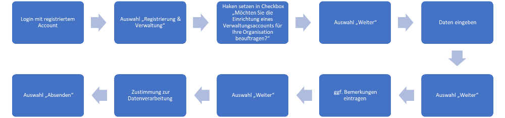 Der Verwaltungsaccount muss bei der PTB beauftragt werden und kann erst nach Freischaltung durch die PTB genutzt werden. Zur Beauftragung einer Verwaltungsaccountfreischaltung folgen Sie bitte diesen Schritten:
